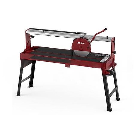 Профессиональный плиткорезный станок. Конструкция устройства предусматривает совершение пропила под прямым углом 90° и наклоном в 45°. Длина продольного среза составляет 1200 мм. Длина диагонольного среза составляет 848х848 мм. Глубина реза под углом 90° составляет 66 мм, а при 45° - 53 мм.